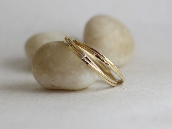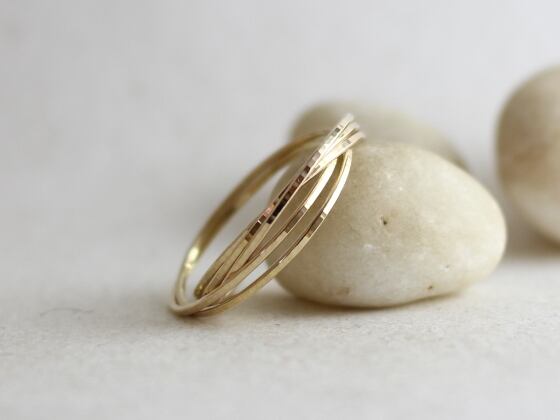 ひとつひとつ手で14Kゴールドフィルド0.8mm線を鍛造した極細五連結クロスリング。送料無料。