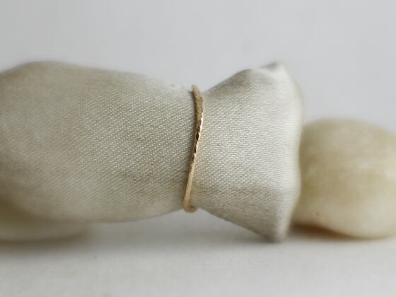 ひとつひとつ手で14Kゴールドフィルドスパークル1mm線を鍛造しアクセントをつけた細身のリング。送料無料。