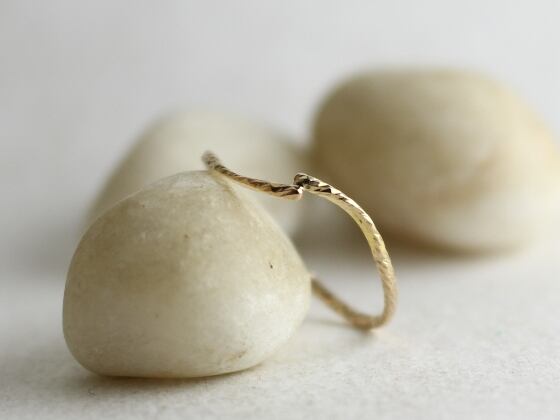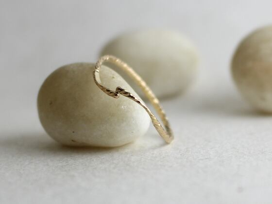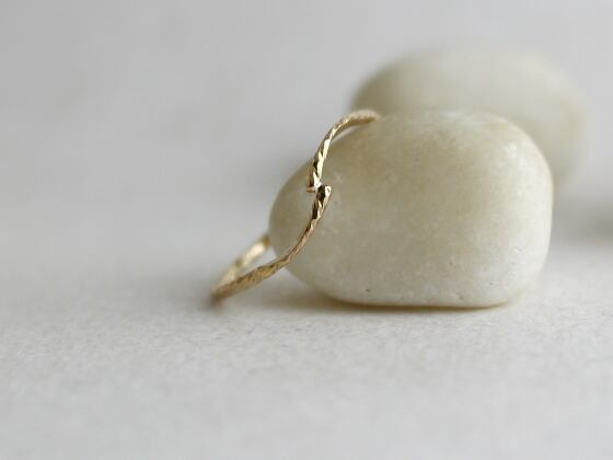 ひとつひとつ手で14Kゴールドフィルドスパークル1mm線を鍛造し強弱アクセントをつけた細身のリング。送料無料。
