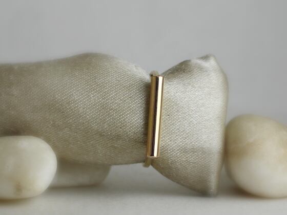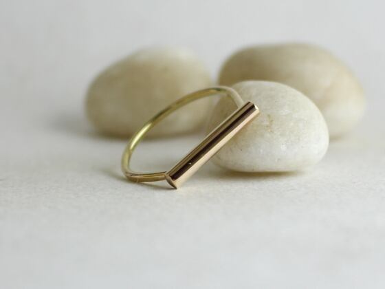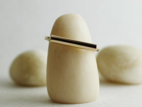 ひとつひとつ手で14Kゴールドフィルド1.3mm線を鍛造した細身のリング。トップは14Kゴールドフィルド径2.6mm線。送料無料。
