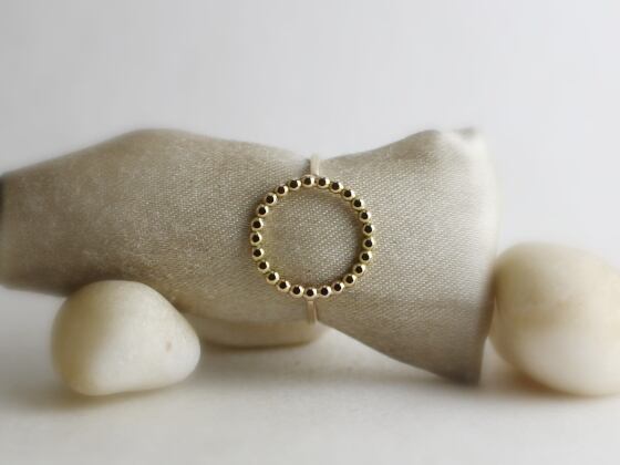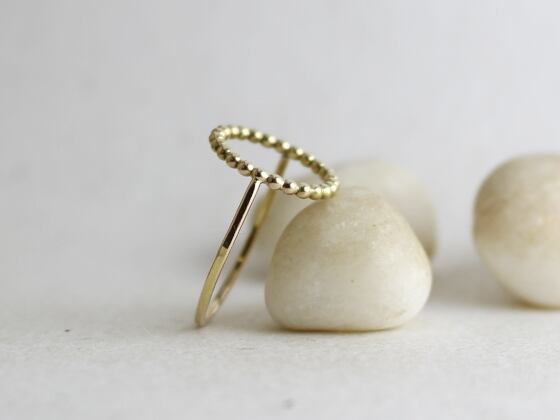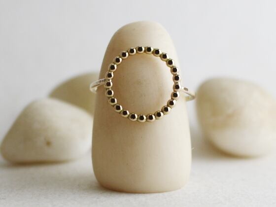 ひとつひとつ手で14Kゴールドフィルド1.0mm線を鍛造した細リング。トップ部分はゴールドフィルドビーズ1.5mm線/径12mm。送料無料。
